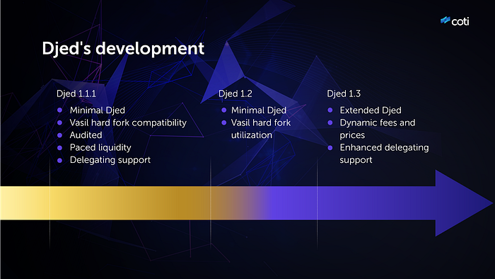Djed 1.3 is the extended Djed version that will introduce dynamic fees and prices. In addition, a more progressive delegation program will be supported, resulting in significant liquidity provision.