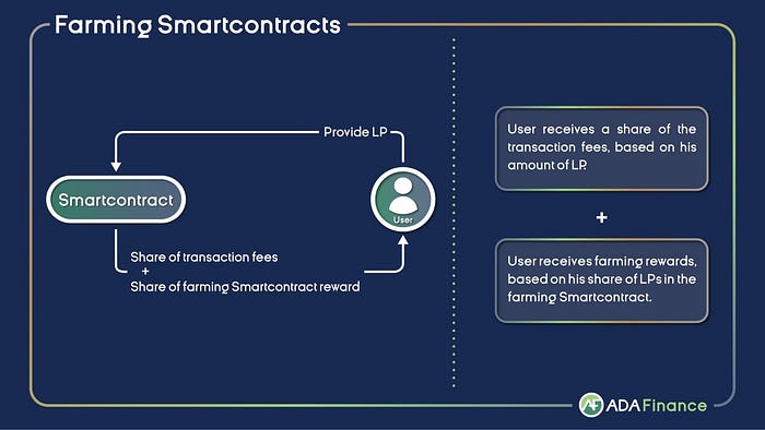 When you provide liquidity to a liquidity pool, you receive Liquidity Points (LPs). You can deposit your Liquidity Points to the Farming smartcontract in order to not only receive your share of the liquidity pair trading fees, but also receive a share of the fixed rewards allocated to that liquidity pool, hence a Farming smartcontract.