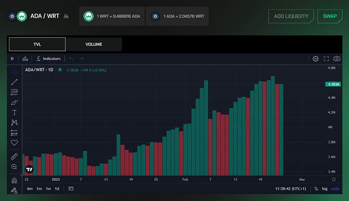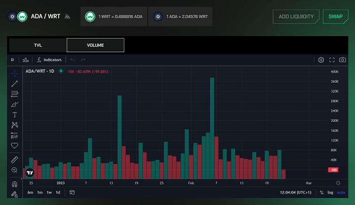 One of the key new updated tools on WingRiders interface are the graphs, which allow Riders to monitor and analyze the assets’ price movement, TVL and trading volume within pools to develop trading strategies over time.