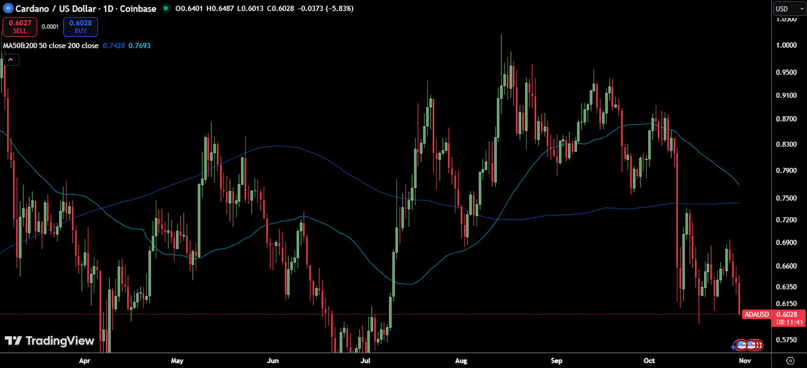 Because of this development, the Cardano token is now starting to fall sharply again, and from all indications, it could break below the $0.6 mark.