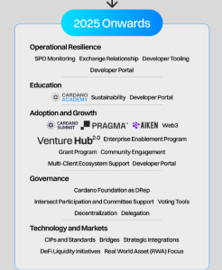 Im Rahmen einer Zusammenarbeit mit MembersCap hat die Stiftung die Einführung von tokenisierten RWA im Wert von 10 Millionen US-Dollar auf der Cardano-Plattform angekündigt. Die technischen Teams arbeiten an wichtigen Vorschlägen wie CIP-0113 und CIP-0143.