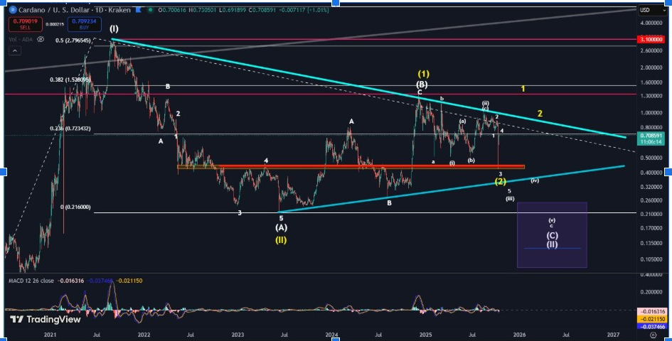 Furthermore, analyst Mr. Brownstone presented two main scenarios for Cardano’s price: a bullish “Yellow Count” and a corrective “White Count.”