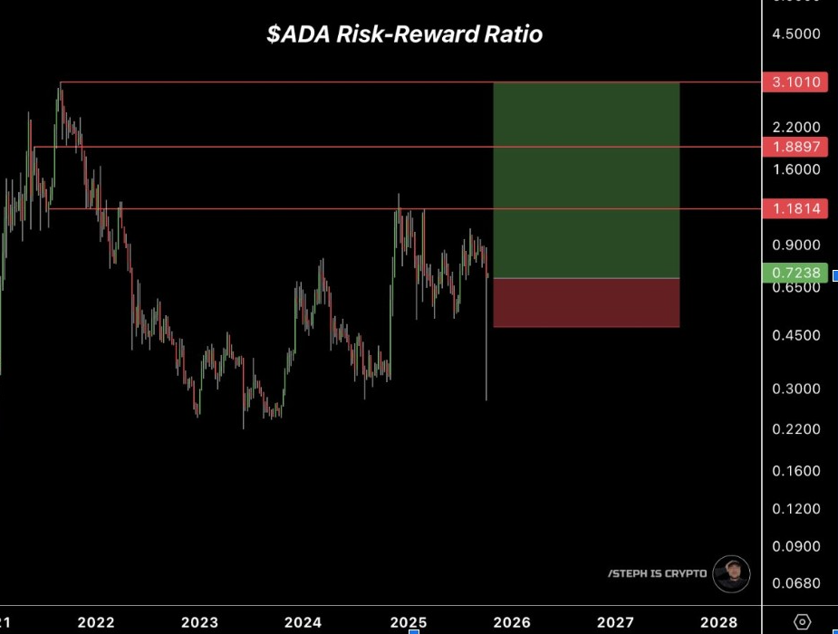 Analyst Steph Is Crypto shared a good risk-reward ratio for Cardano. This suggests a potential upside that significantly offsets its downside.