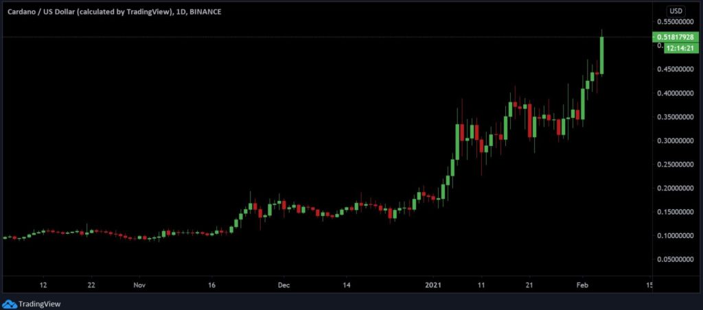 Cardano’s Price Blasts Past $0.50 After 3-Year Hiatus