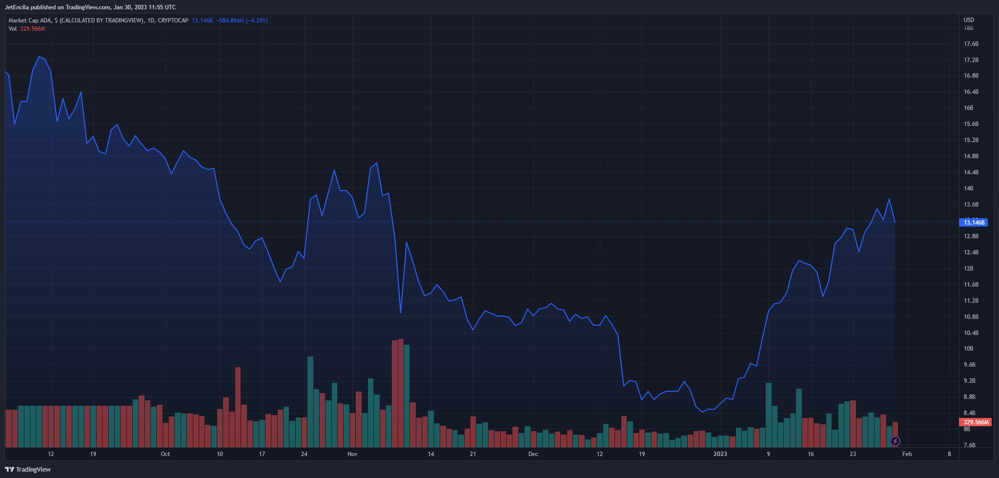 ADA total market cap at $13 billion on the daily chart | Chart: TradingView.com