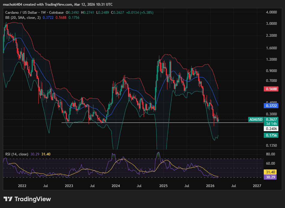 The heightened selling pressure for ADA by whales comes at a time when this altcoin is retesting its multi-year support level around $0.24.
