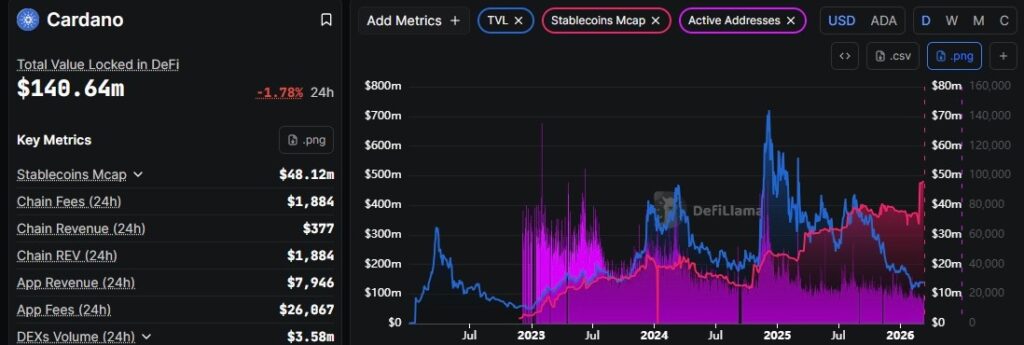 Nonetheless, the Cardano ecosystem, under the stewardship of Charles Hoskinson has been working to catalyze on-chain activity. For instance, the network’s stablecoin market cap spiked from $36.83 million in February to over $47 million at press time following the launch of USDCx, which is pegged to Circle’s USDC.