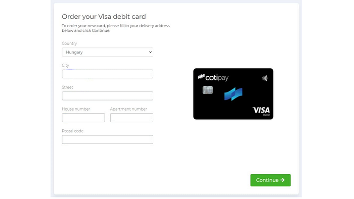 In order to open a COTI bank account, click on this link: coti.simplex.com. Once you fill in all the required sections, you will be transferred to the Debit Card page where you should fill in the delivery details.