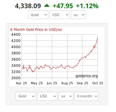 While digital assets are struggling to stay afloat, gold is extending its record-breaking rally, trading at $4,339 per ounce, up another 1.14% over the past 24 hours.