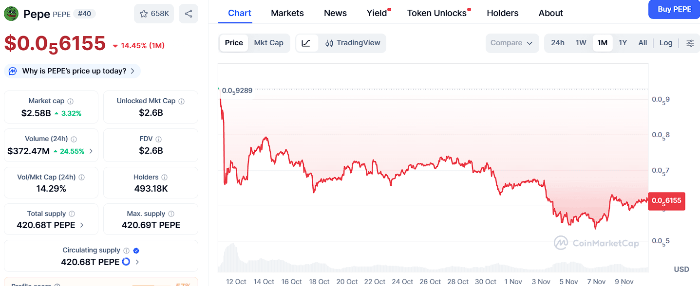 Pepe (PEPE) has proven that meme power is still alive in crypto. Trading at $0.000006155, it continues to capture attention as a speculative favorite. Technical analysis highlights resistance levels at $0.0000069, $0.0000078, and $0.0000091, with support zones at $0.0000053, $0.0000046, and $0.0000040.