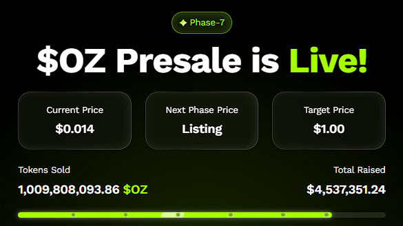 Ozak AI (OZ) is setting a new standard for what’s possible in crypto by merging artificial intelligence, predictive modeling, and decentralized data systems. Currently in its 7th OZ presale stage, Ozak AI has already raised over $4.5 million and sold over 1 billion OZ tokens, proving that investor confidence is skyrocketing even before its official launch.