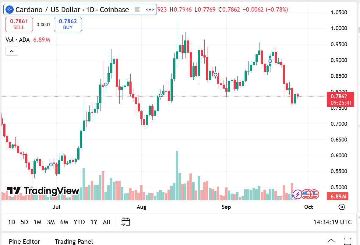 Conversely, Cardano (ADA) has gained 1.6% to $0.7861, with a market value of $28.12 billion. The trading volume fell 45.08% to $844.29 million, though, as investors are merely waiting for the long-term trend to kick in before their next action.