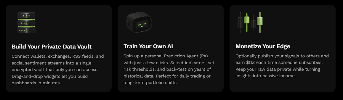 Ozak AI is a blockchain-based crypto project that provides a technology platform that focuses on predictive AI and advanced information analytics for financial markets. Through machine learning algorithms and decentralized community technologies, Ozak AI enables real-time, correct, and actionable insights to assist crypto enthusiasts and corporations in making the proper decisions.