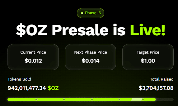 Priced at just $0.012 in presale, Ozak AI has already raised more than $3.7 million with over 940 million tokens sold, showing strong early demand. But unlike Shiba Inu, which grew on meme power alone, Ozak AI fuses artificial intelligence with blockchain to create real utility—potentially giving it even greater long-term momentum.