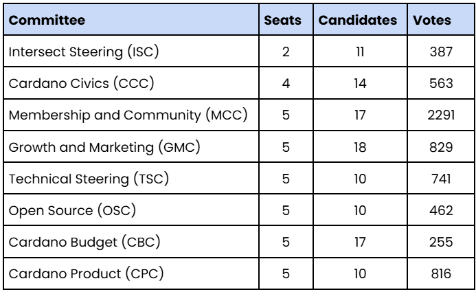 The Cardano community answered the call in the 2025 Q4 committee elections, with 293 members, 19.4% of eligible voters, casting a total of 6,344 ballots among 98 candidates competing for 36 seats across eight committees.
