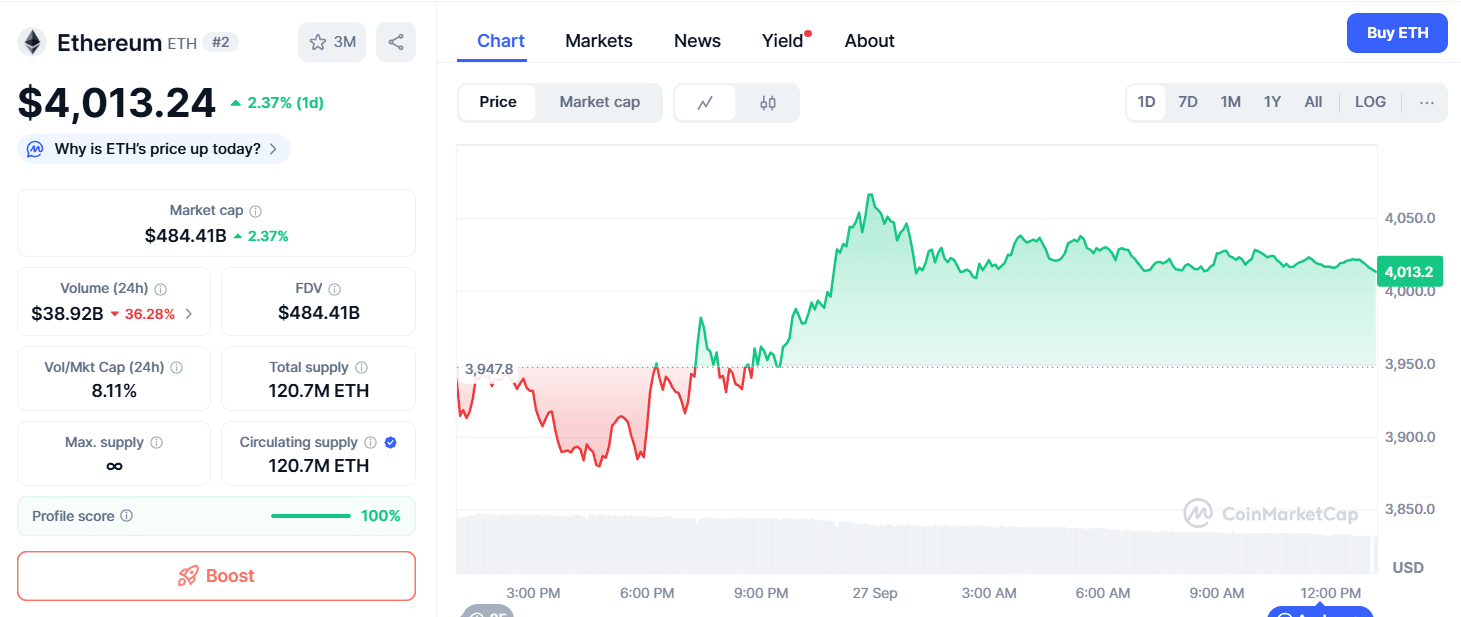 Ethernet is still the foundation of the decentralized application and smart contracts. Introduced in 2015, it created the foundation for decentralized finance (DeFi) and non-fungible tokens (NFTs). ETH has a value of $4,013.24 and a market capitalization of 484.41 billion. It has a supply going around of 120.7 million ETH. It implements transactions with the use of gas fees, which ensure the security of the network and allow innovation across different industries. According to analysts, Ethereum has a larger scale and a developer community than its competitors.