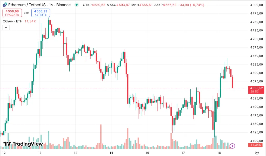Le cours Ethereum a augmenté de 0,9% au cours du dernier jour, à 4560 $.