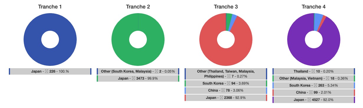 ※参考:カルダノ(ADA)初期販売の居住地データ。第1回は100%、第2回も99.9%を日本の居住者が占めている。▶詳細データ(公式サイト)