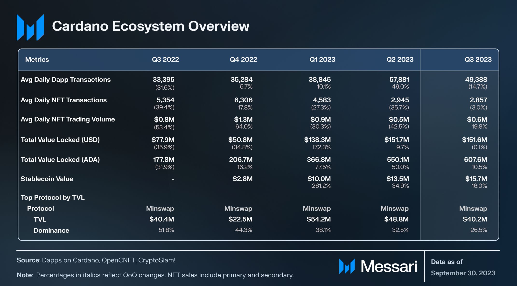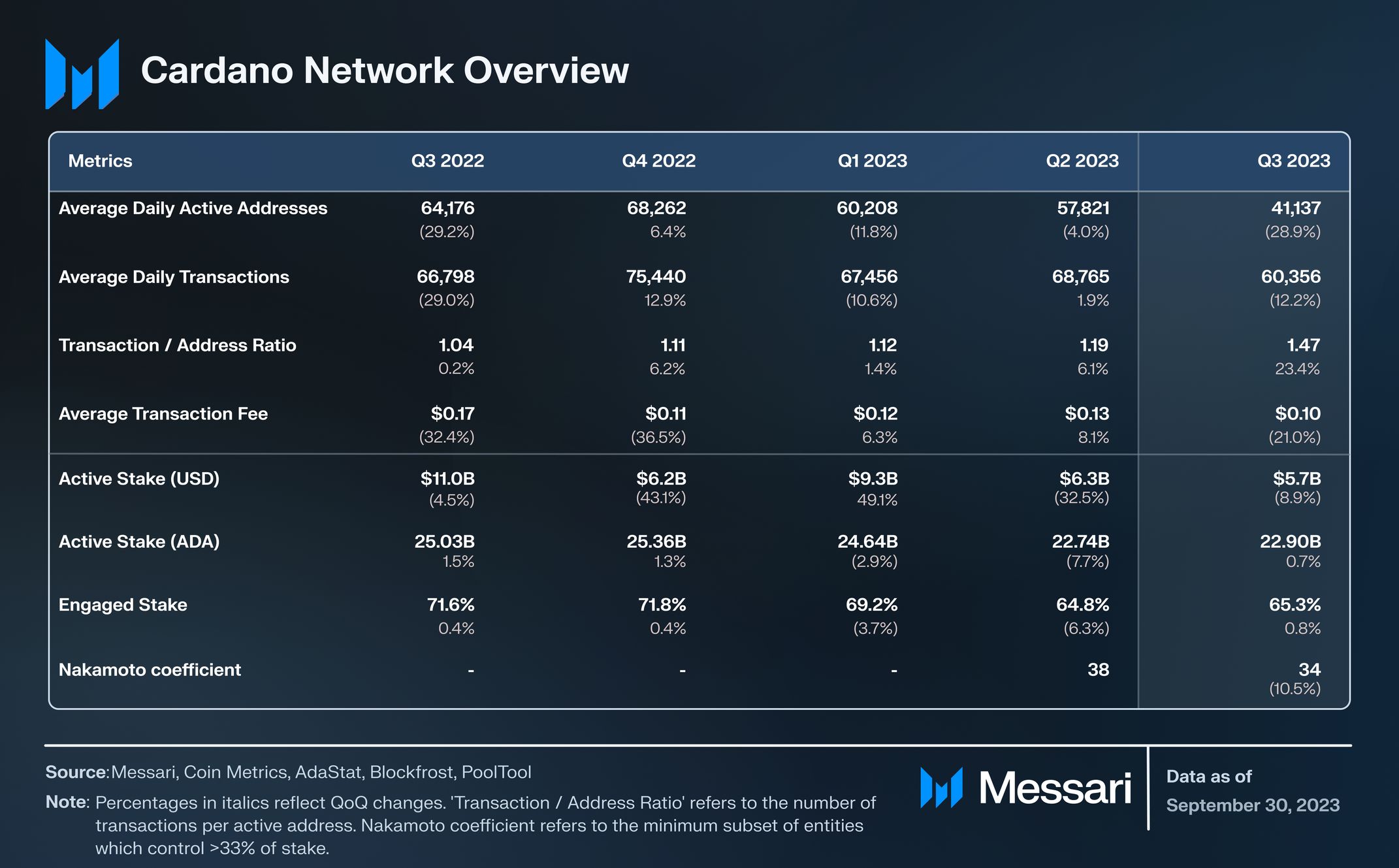 State of Cardano Q3 2023 by Messari