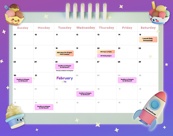 The ISO will begin as well on Thursday, January 20, and will continue for five epochs, with rewards (5% of the total SUNDAE supply, 1% per epoch) being distributed based on the snapshots that will be taken at each epoch boundary.