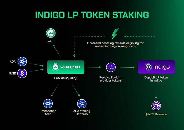 Another partnership was a cross-platform collaboration with Indigo Protocol, where LPTs that were received for staking $iUSD and $ADA on WingRiders’ protocol could be used on Indigo’s platform to receive $INDY token gains as well as increasing Boosting eligibility on WingRiders for farming.